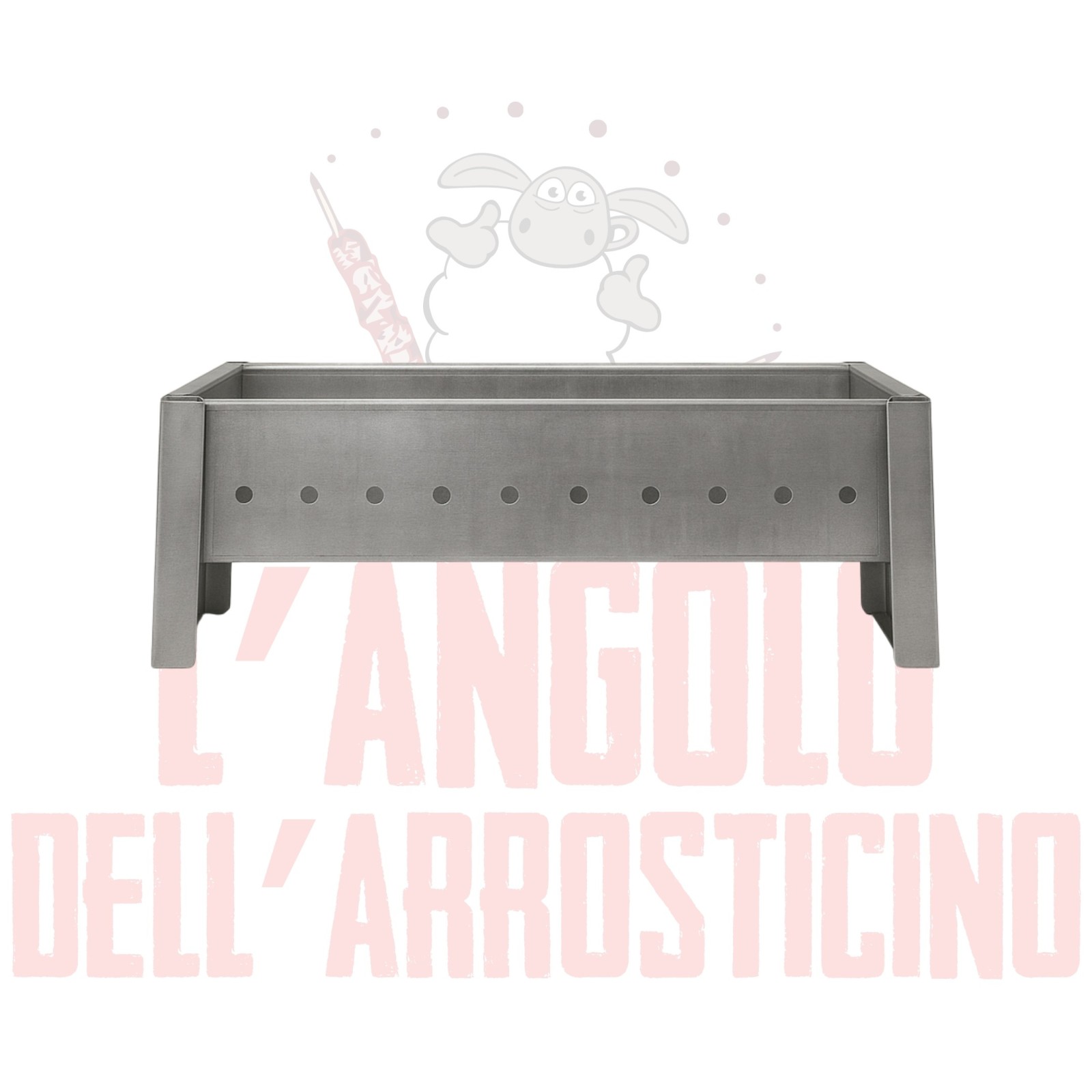 Il suo design semplice ma funzionale consente di appoggiare gli arrosticini mantenendoli ben distanziati e stabili durante la cottura. I fori laterali favoriscono il ricircolo dell’aria e permettono una perfetta gestione della brace, proprio come sulla fornacella tradizionale.